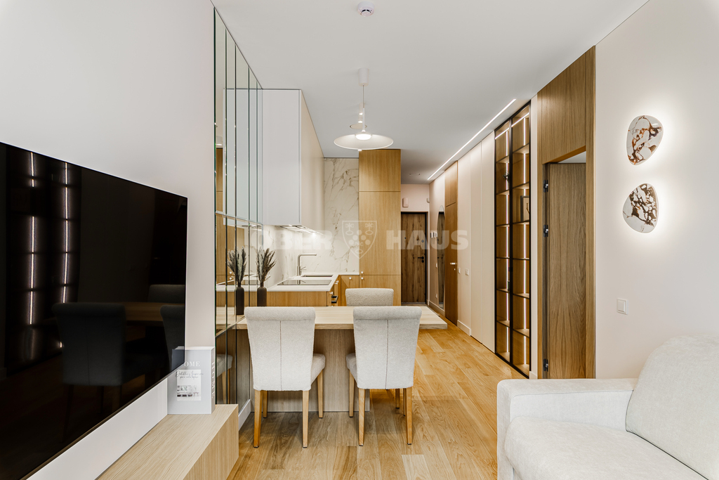 • Kambariai: 2 (svetainė su virtuve + miegamasis)