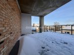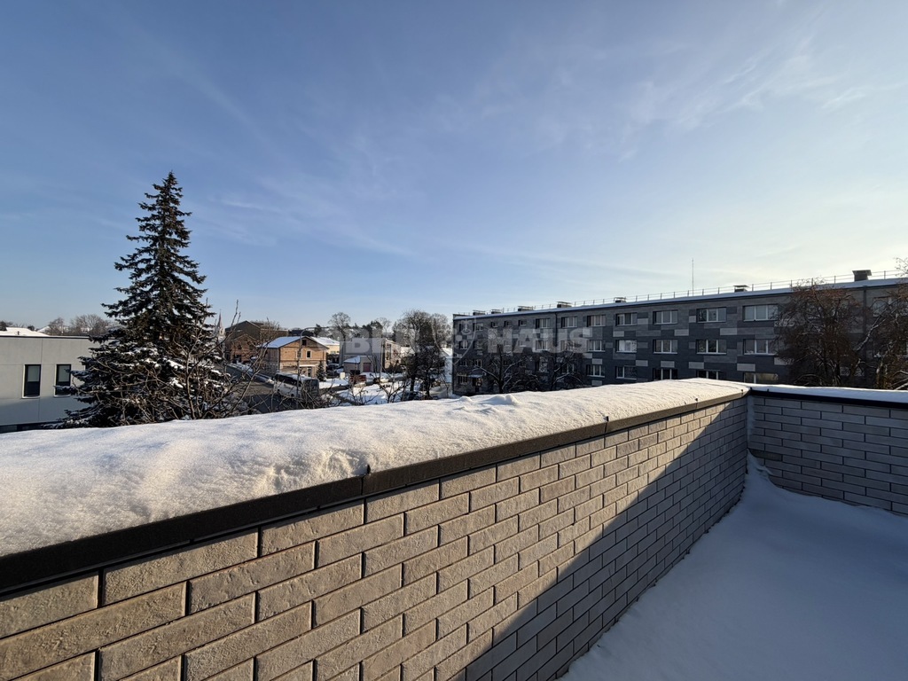 Iš svetainės patenkama į platų balkoną, vedantį į įspūdingą 35 kv. m terasą po stogu. Terasa dalinai apsaugota elegantiška tamsinto stiklo sienele iki pusės aukščio, suteikiančia privatumo ir jaukumo pojūtį, išlaikant atvirą vaizdą. Tai erdvė lėtiems vakarams, poilsiui ar jaukiems susitikimams miesto fone.