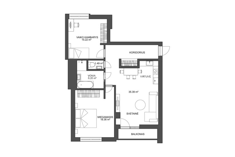 - Butas šviesus, kasdien džiugins saulės šviesa -langai orientuoti į pietus ir vakarus;
