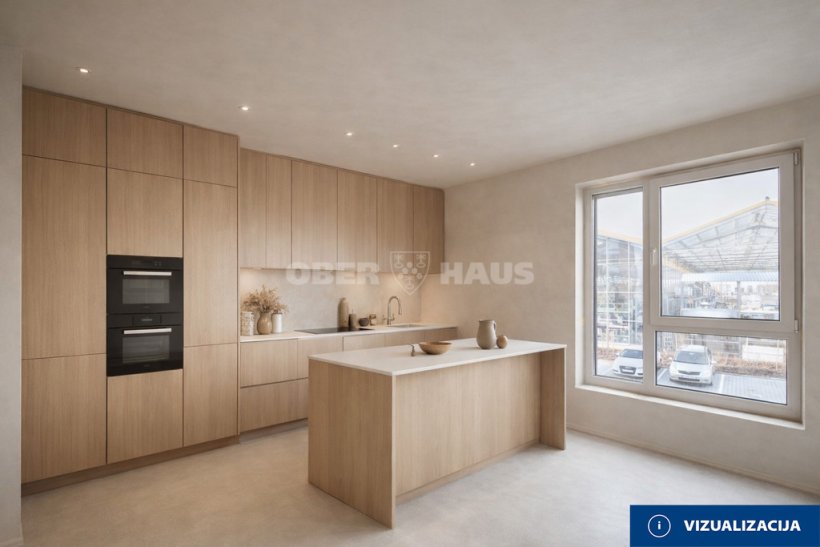 • Pilnai įrengta virtuvė su įmontuota reikalinga buitine technika.