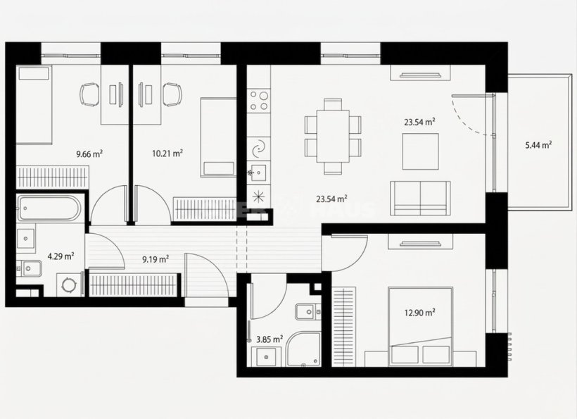 • Butas erdvus ir racionaliai suplanuotas, bendras plotas 72,21 m²