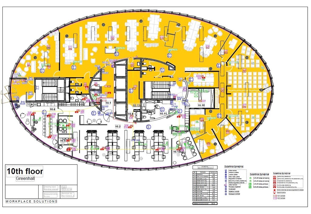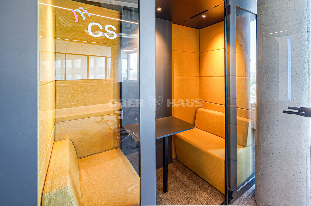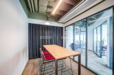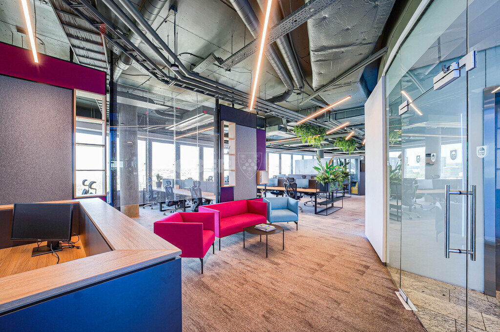 - The office is dominated by an open space layout, 2 meeting rooms, call box, 3 separate offices, kitchen, 2 WC areas, conference hall, accommodating up to 90 people.