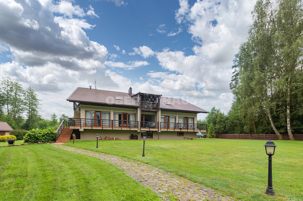 A functioning rural tourism business with a 3*** hotel is for sale on the shore of an exceptional lake. Burokaraištio Ežetas is one of the exceptional pearls of the Varėna region and Lithuania, located ~4 km from Perloja. The lake is extremely deep (up to 22 m deep), characterized by a distinctive greenish-turquoise color, exceptionally clean water with densely surrounded forest. MAIN BUILDING - HOTEL The main building fully complies with the 3* classification and operates as a hotel. Different types - 12 rooms, a restaurant, a conference hall, a lobby. The total number of rooms accommodates 40 guests. AREA: 590.06 m² YEAR OF RECONSTRUCTION: 2005. PURPOSE: Public recreation (summer resort) HEATING: Centralized system (electricity) + solid fuel WATER SUPPLY/SEATER: Local ENERGY CLASS: D INDIVIDUAL COTTAGES ON THE LAKE SHORE Both cottages are in the first row to the lake shore. Newly built (2023) Equipped with separate terraces with whirlpool baths. Cottages accommodate 4 guests each AREA: 29.25 m² + 29.46 m² YEAR OF RECONSTRUCTION: 2023 PURPOSE: Services (sauna) HEATING: Air-air + air-water (electricity) WATER SUPPLY/SEATER: Local ENERGY CLASS: D FAMILY APARTMENTS WITH AUXILIARY ROOMS Separate, individual building with auxiliary rooms. Accommodates 6 guests. There is an 8-seat hot tub on the terrace, oriented towards the lake shore. There is a fireplace in the main space. AREA: 161 m² YEAR OF RECONSTRUCTION: 2005. PURPOSE: Industrial and warehousing HEATING: Air-air (electricity) + solid fuel WATER SUPPLY/SEATER: Local PLOT Well-tended terrain with a slight slope overlooking the lake. Gazebos, outdoor exercise area, neat well-being, paved paths, fireplaces. Two electric car charging stations and a solar power plant on the roof of the main building are installed. There is an opportunity to purchase an adjacent 30a plot for development. An additional 3 houses have been designed in the eastern part of the plot (construction permits have been removed). AREA: 65.80 a PURPOSE: Other (recreational) Profitable, autonomous business with a long-term steady flow of customers and employees. The entire complex is fully powered by a solar power plant. There are 2 electric car charging stations in the parking lot.