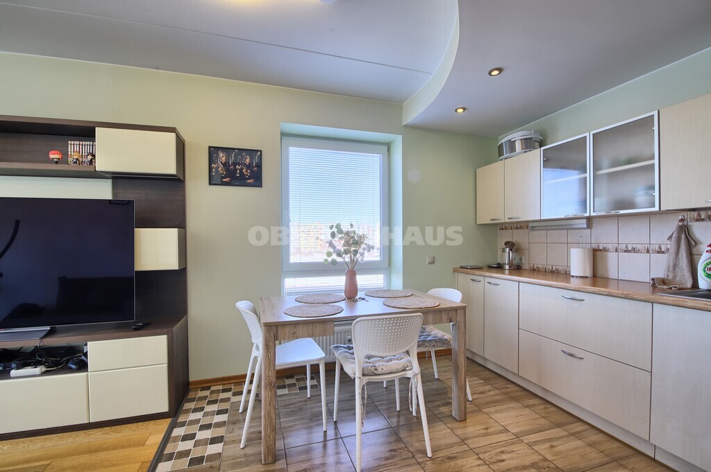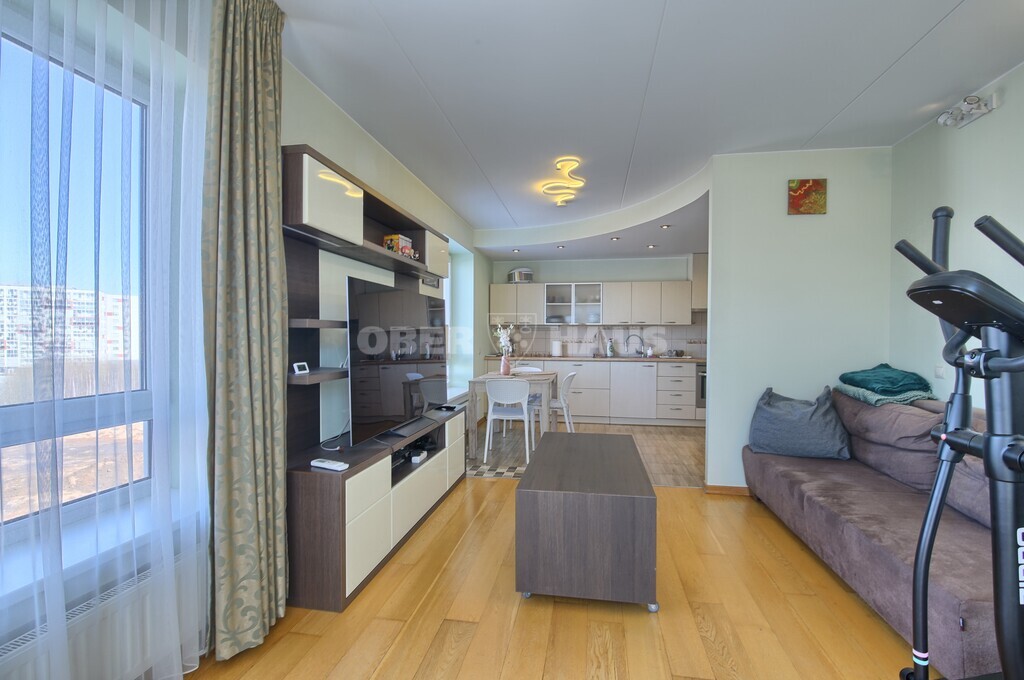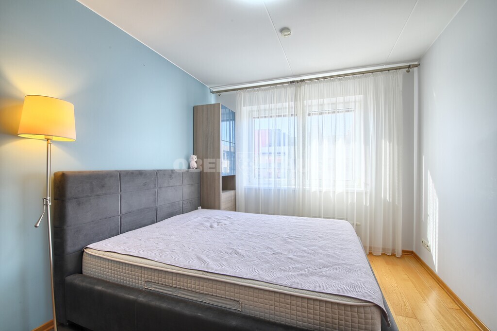 A spacious living room combined with a kitchen area, a bedroom and a children’s room. Bathroom and WC are separate. There is a balcony. Windows face north and west. The apartment is rented with furniture and household appliances; an air conditioner is installed. The territory is monitored by security cameras. Convenient access to the city center by car and public transport. Nearby you will find schools, kindergartens, shops, and cafés.