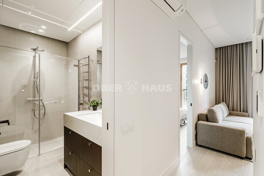 A brand-new, never-before-lived-in 1-bedroom (2-room) 45 sq. m apartment with a spacious 12 sq. m terrace is available for rent. You will be the first tenants.