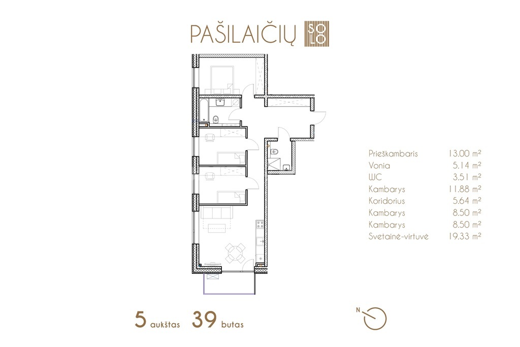 • three bedrooms apartment • Living room connected to the kitchen in a common area • separated bedroom • balcony • Spacious bathroom with WC • A++ energy class • Underfloor heating • Underground or above-ground parking and storage room available If necessary, we can also offer full finishing options. A reliable and experienced general contractor and developer - UAB HiLTUS will ensure the quality of the building and the environment.