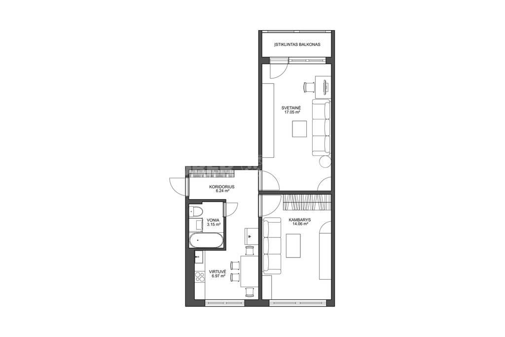 The houses are located on a low-traffic street, right next to Žardininkų Park, "Simonaitytės Kalnas" and Smiltelės Street - a public transport artery. A great place to live, thanks to the developed infrastructure you will quickly reach various public and private educational and medical institutions, shops, a sports club, a public transport stop. The houses are distinguished by spacious rooms with windows to the east and west. There is a balcony, also on the west side. The apartment has a bedroom and a large living room, a bathroom connected to a toilet. The houses are renovated in an old way, but neat and clean, and the windows to different sides without apartment buildings in front ensure constant light and coziness, even though it is on the first floor. Cosmetic renovation of the apartment would improve the quality of life, but it is possible to live without renovation. This is a great choice for a young family or for rent. ADVANTAGES ● Convenient place to live; ● Low-traffic street, nearby park, a wide selection of educational and medical institutions; ● Bright, sunny and warm apartment; ● Conveniently planned housing with windows in different directions; ● Balcony; ● Basement room. GENERAL INFORMATION ● Area: 47.31 sq. m; ● Number of rooms: 2; ● Floor: 1/5; ● Heating: city centralized; ● Floor: laminated flooring; ● Walls: wallpapered; ● Interior doors: wooden; ● Exterior doors: armored; ● Windows: plastic frames with glass units; ● Balcony. HOUSE INFORMATION ● Year of construction: 1981; ● House type: block, renovated exterior of the house; ● Neat, lockable staircase; ● Car parking lot; ● House administrator: homeowners' association. LOCATION AND INFRASTRUCTURE ● next to Žardininkai Park and "Simonaitytės Hill"; ● 2 minutes walk to a public transport stop, from which you can reach many places in the city; ● 10-minute walk to the kindergarten "Linelis"; ● 10-minute walk to the LIDL store; ● 10-minute walk to the Catholic church or Orthodox church; ● 15-minute walk to the "Smeltė" junior high school; ● 15-minute walk to the Sąjūdis Park with a skateboard park; ● 15-minute walk to the BIG shopping center, with RIMI, MAXIMA and other shops and entertainment.