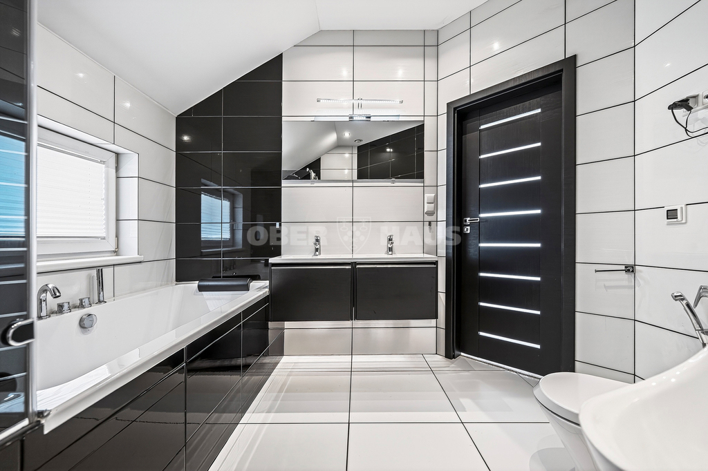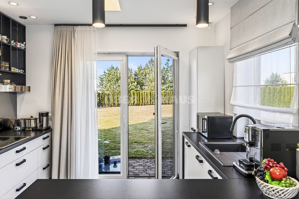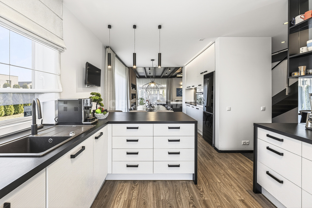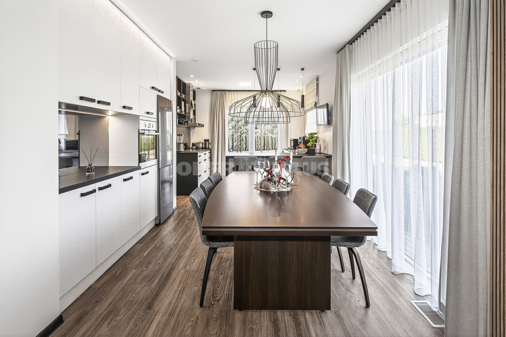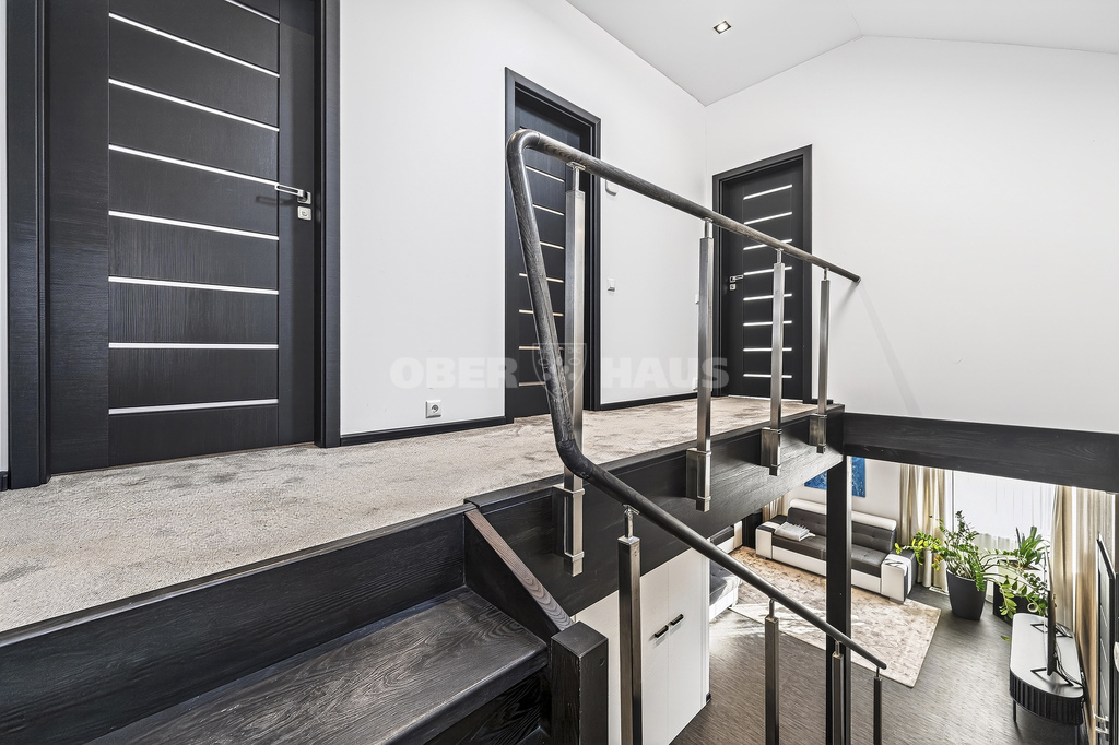 The house is built using high-quality materials and features modern interior solutions. Large panoramic windows provide an abundance of natural light, while the open-plan living room, kitchen, and dining area create a perfect space for family gatherings.