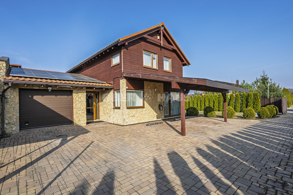 The property includes a generous 14.29-are plot with a fully landscaped yard and thuja greenery. A private and quiet neighborhood allows you to enjoy life close to nature, just a short drive from Vilnius city center.