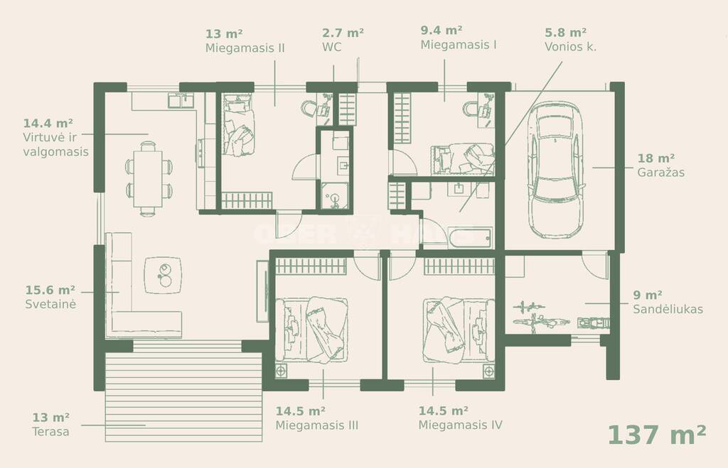 Only 17 min. from the center of Vilnius, we have developed a closed block of 14 one-story semi-detached houses.