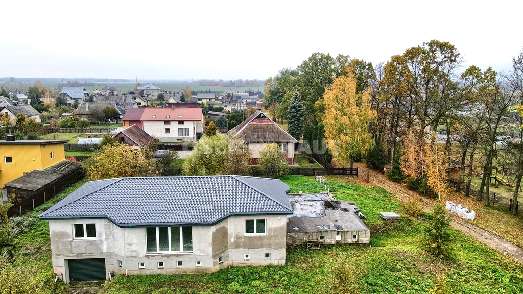 A newly built brick house with a basement is for sale in Marijampolė, Išrūčio st. A spacious one-story dwelling with a large basement under the entire house and a terrace. The house is perfect for both living and business or investment. It is especially attractive for those who want to equip their dream home - choose the interior, furniture and adapt the spaces to their needs, because all communications are already prepared. The house is located in a very good location in Marijampolė, in a convenient, quiet and strategically convenient location, near the city center. ADVANTAGES: • Newly built (2024) brick house • Walls are insulated 20 cm, roof – 30 cm, green plaster applied • Large basement under the entire house and under the terrace with extremely high ceilings • Toilet and shower installed in the basement – very convenient and rare • Possibility to install any heating according to your needs • New windows, roof covered with tin • Garage • Alarm installed • Drainage wells laid out under each pipe • Sewerage and water supply – city, all communications are ready GENERAL INFORMATION: • Address: Išrūčio g., Marijampolė • Year of construction: 2024 • Type: brick, 1 floor + basement • Total area: 324.79 m² • Number of rooms: 3 • Plot area: 15.13 a • Construction completion: 86% COMMUNICATIONS: • Water: city • Sewage: city • Electricity: installed, working • Heating: can be installed as needed