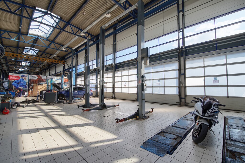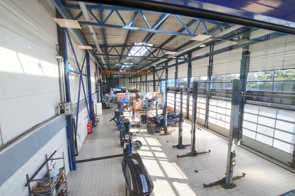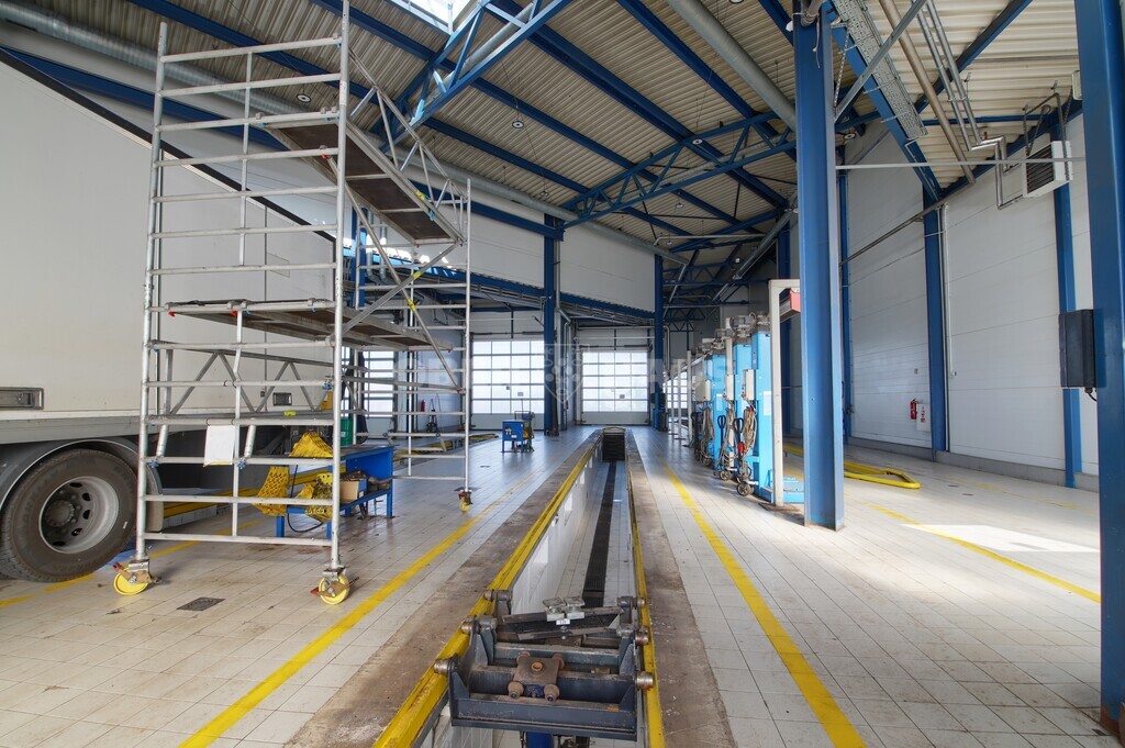 • 6 vietų serviso zona su keltuvais lengviesiems automobiliams ir mikroautobusams (4 keltuvais ir 1 žirklinis keltuvas ir stabdžių tikrinimo stendas).