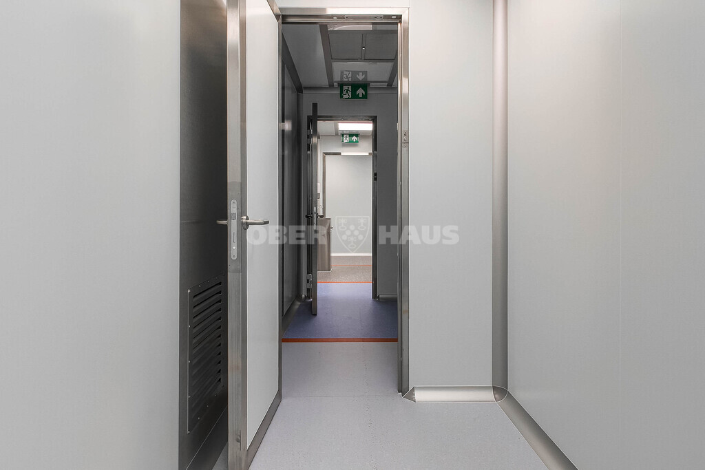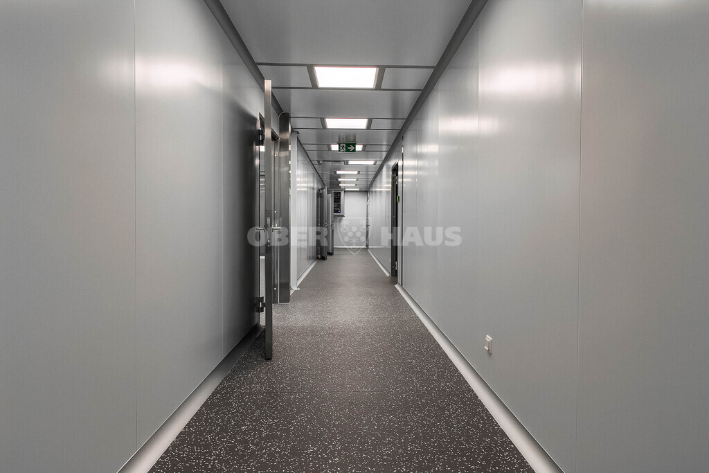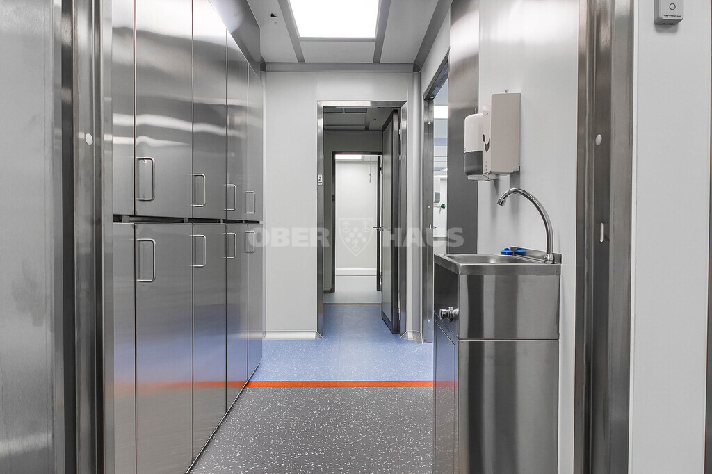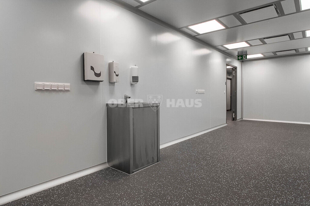 • Specializuota apdaila: farmacinės sienų panelės, užapvalinti kampai, antistatinė PVC grindų danga.