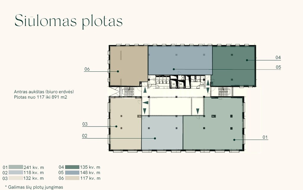 Nuomojamas biuro plotas nuo 117 iki 891 m2