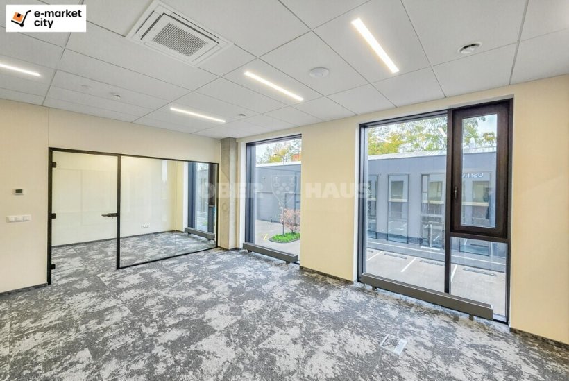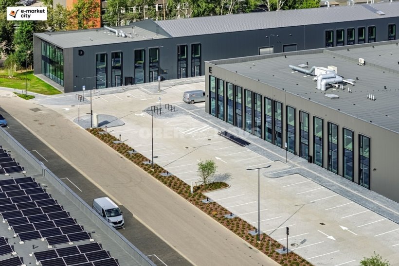 "e-market city" отличается удобным подъездом и вместительной парковкой (за офисные помещения площадью от 25 до 35 м² закрепляется 1 парковочное место (20 евро/место/месяц + НДС)).