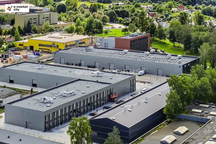 Сдаётся в аренду от 538 м² до 1225 м² складских помещений энергетического класса A+ с торговыми и офисными площадями в проекте "e-market city" в Киртимяй, на пересечении шоссе Eišiškių с улицей Geologų.