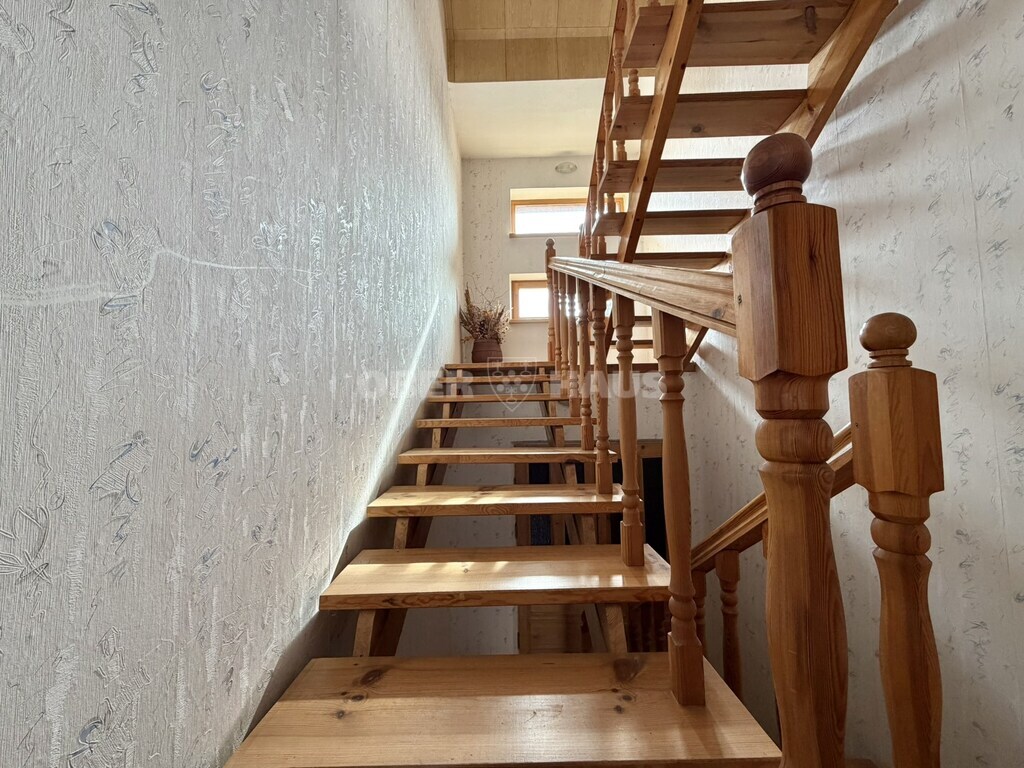 Продается жилой дом площадью 306,88 кв. м с хозяйственными постройками в деревне Моланю, район Аливу, недалеко от пруда Моланю II. Это исключительная недвижимость, отличающаяся простором, рациональной планировкой и универсальностью — идеально подходящая как для комфортной семейной жизни, так и для проживания двух семей или развития различных видов деятельности. Основные сведения • Общая площадь - 306,88 кв. м (полезная - 236,11 кв. м, жилая - 89,64 кв. м) • Площадь участка - 17,02 ара • Хозяйственные постройки - 174 кв. м общей площади (кирпич) Качество и инвестиции Дом построен в 1989 году, полностью зарегистрирован в 2011 году и постоянно ремонтируется: • Утепление 2009 года (EPS 80, толщина стен ~56 см) • Клееные деревянные окна со стеклопакетами • Новая жестяная кровля "Руукки" 2018 года • Городское водоснабжение и канализация • Мощность электроснабжения – 25 кВт (3 фазы) • Отопление – твердотопливный котел "Стропува" (используется частично) • Дополнительный котел для частичного отопления • Газ – на границе участка Планировка и функциональность Первый этаж: • Просторная гостиная, три комнаты, кухня, прихожая, два балкона (деревянные полы) • Два отдельных санузла – туалет и душевая комната Мансарда: • Открытое пространство для отдыха и активного времяпрепровождения – бильярд, настольный теннис и спортивная площадка. Полуподвальное жилое помещение: • Полностью функциональный этаж со второй кухней, комнатой, прихожей, сауной, ванной комнатой и туалетом, прачечной, котельной и гаражом. Дополнительное преимущество: • Два отдельных входа позволяют удобно адаптировать дом для двух семей или отдельных жилых зон. Участок и окружающая среда • Ухоженный участок • Зрелые фруктовые деревья, клумбы • Беседка на открытом воздухе • Колодец для полива • На участке и в зоне входа подготовлено уплотненное основание для укладки брусчатки. Хозяйственные постройки и возможности • Кирпичные здания площадью 174 кв. м – подходят для хранения, мастерских или различных видов деятельности • Южная часть крыши площадью ~150 кв. м – отличное место для солнечной электростанции. Инфраструктура и окружающая среда • Рядом пруд Моланю II с бассейном • Строится новый детский сад • Рядом общественный центр, библиотека, спортивная площадка, кафе • Рядом торговый центр «Норфа XL» • Коневодческое хозяйство Моланю • Удобное сообщение с городом Дополнительная возможность в Паневежисе: • Дополнительно можно приобрести прилегающий земельный участок под приусадебный участок площадью 10,29 акров. Дом продается со всей мебелью и бытовой техникой, можно сразу заселиться. Для получения дополнительной информации и осмотра обращайтесь по телефону: +37065831303