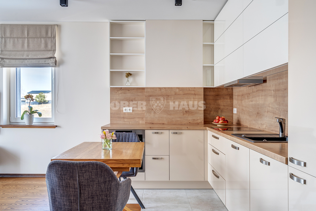 • Качественная отделка — долговечные полы из ясеня, двери из массива дуба, кухонный гарнитур, изготовленный на заказ.