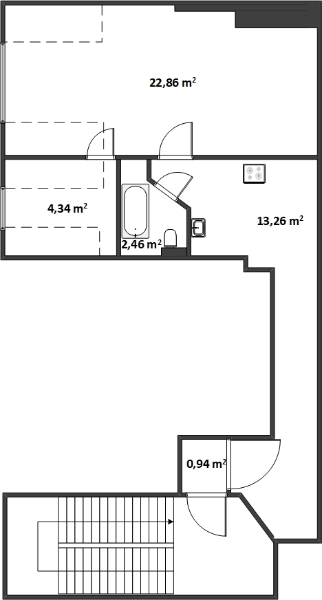 Вторая комната — гардероб, возможность установить двуспальную кровать (в настоящее время разобрана)